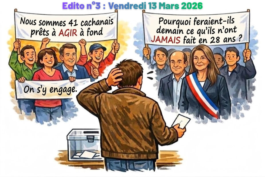 Nous rassemblons des Cachanaises et des Cachanais de toutes sensibilités — centristes, écologistes, progressistes — unis par l’amour de leur ville et la volonté de la faire avancer. Nous ne répondons à aucune consigne venue de Paris. Notre seul engagement : l’intérêt des habitants.